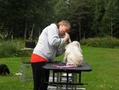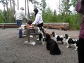 Kesäpäiville Vallitun leirikeskukseen oli jenkkejä omistajineen saapunut paikalle paljon, pari pientä pentustakin joukossa. Eipä voi muuta kuin kehua: ruoka oli hyvää, ohjelma oli mielenkiintoinen ja sitä oli juuri sopivasti ja myös säänhaltijat olivat suosiollisia. Paikka oli ihanteellinen tähän tarkoitukseen: tilaa ylenmäärin koirien juosta vapaana, hieno iltanuotiolaavu ja hyvä sauna ja ranta.